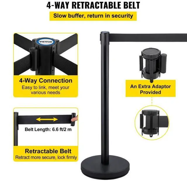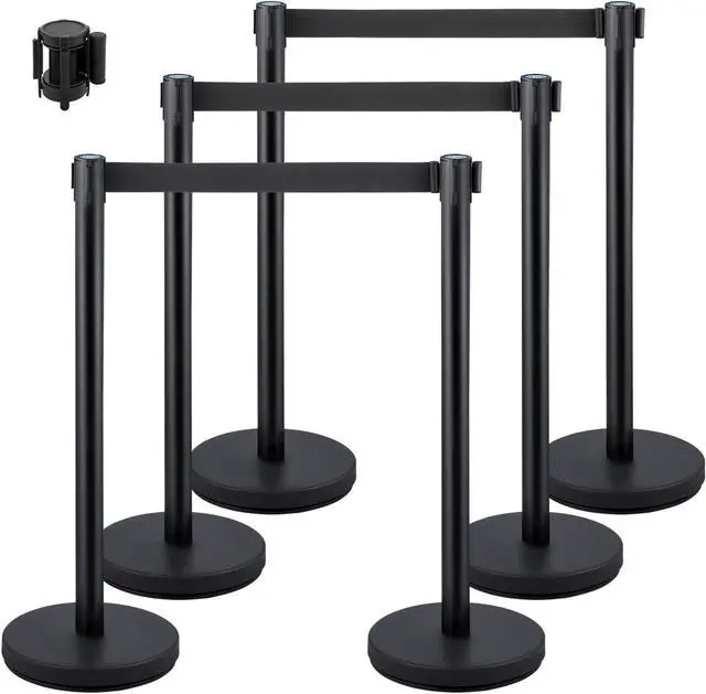 6pcs Queue Barrier Posts Black Retractable Belt Stainless Steel Concerts