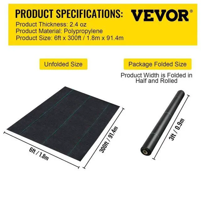 VEVOR 6'x300' Weed Barrier Landscape Fabric Ground Cover 1.5Oz PP Chemical-free