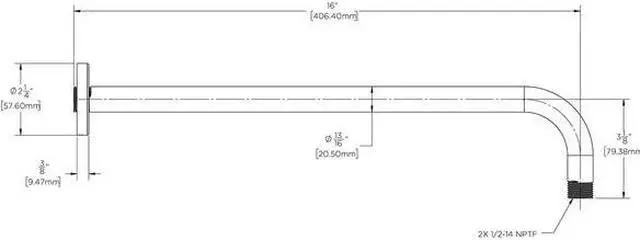 California Proposition 65: This product contains a chemical known to the State of California to cause birth defects or other reproductive harm. Featuring a clean, minimalistic design – the S-2570-MB Wall-Mounted Rain Shower Arm and Flange is perfect for any modern bathroom. It’s extended, 16-inch frame was specifically crafted to coordinate with our signature Rain Shower Heads, ensuring the best performance imaginable. The Rain Shower Arm and Flange is constructed entirely of brass to provide exceptional durability.