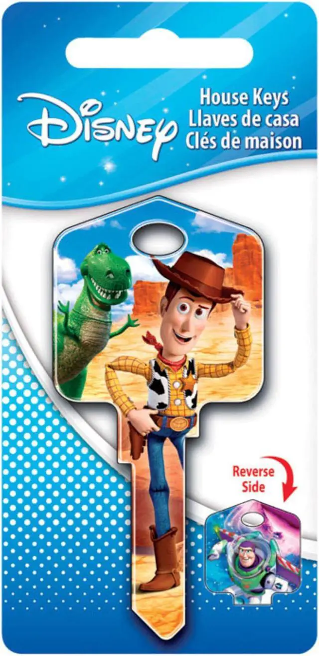 Brand Name: Hillman Sub Brand: Disney Style: Buzz/Woody Key Type: House Product Type: Key Blank Key Krafter Number: 66/97 Traditional EZ Number: KW1/KW10 Sides: Single sided Model Compatibility: Kwikset and Titan Locks Number in Package: 1 pk Head Type: Brass Head Material: Brass Key Number: KW1/KW10 Color: Multicolored
