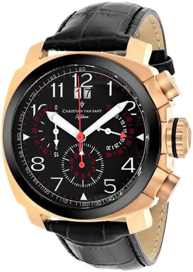 Features : Chronograph, Date display Gender : Men Dial : Black Movement : Swiss parts quartz Clasp : Deployment-buckle Strap or Bracelet : Strap Strap or Bracelet Color : Black Case Shape : Round Measurement : 50mm Bracelet Measurement : 21mm Bracelet Length (in inches) : 7 Case Thickness : 15mm Mineral Crystal 10 ATM - 100 meters - 330 feet Water Resistance