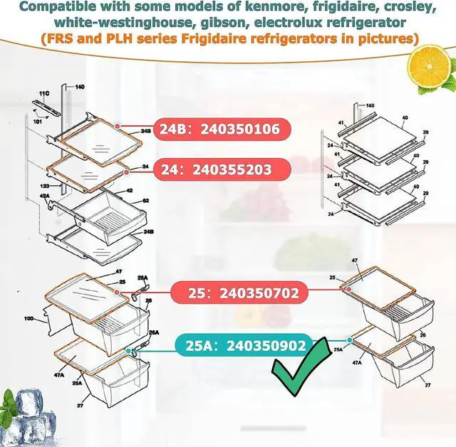 240350903 Crisper Pan Cover (Bottom) Compatible with Frigidaire Refrigerator
