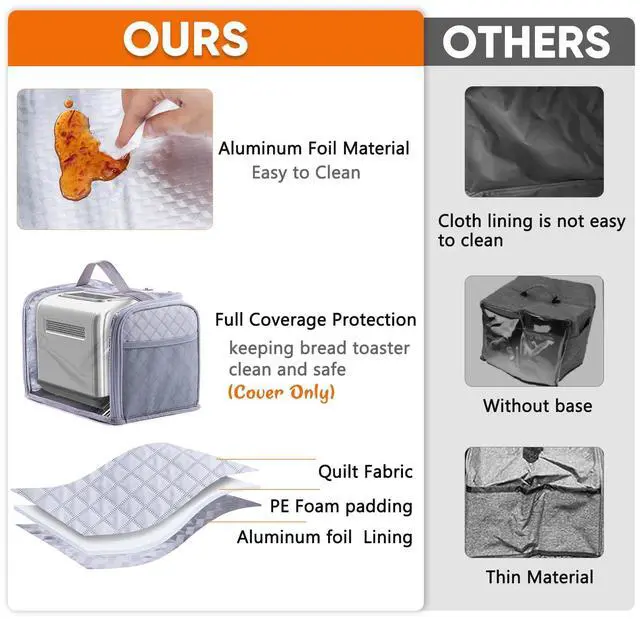 Made with a high-quality washable quilted fabric exterior and a water-resistant, heat-resistant aluminum foil interior. It won’t melt from residual toaster heat and can be wiped clean or machine washed for convenience.