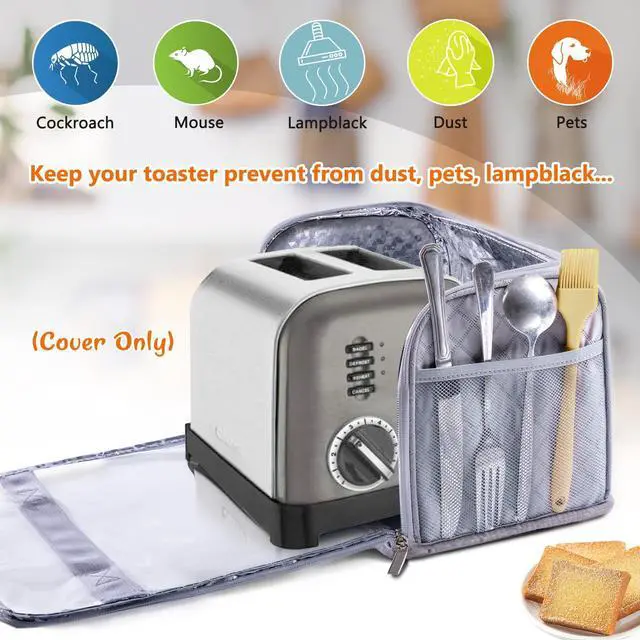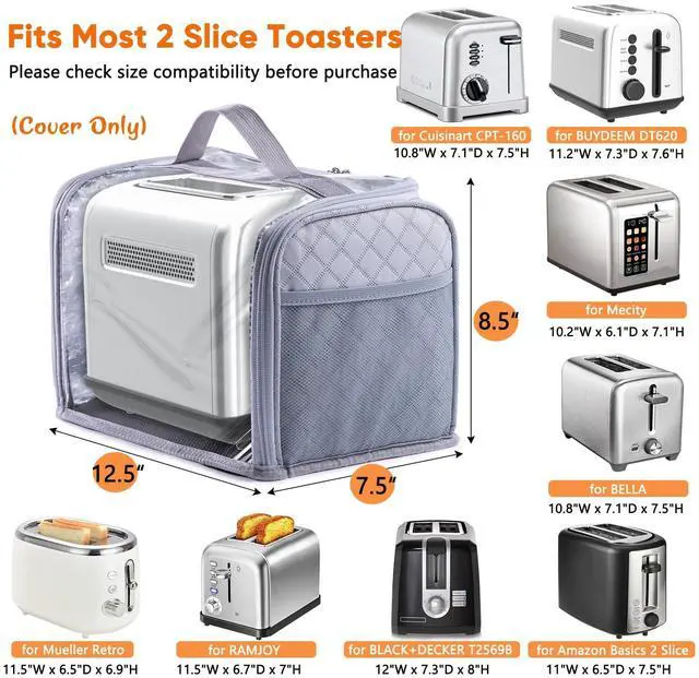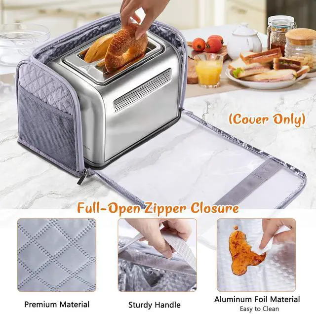 Full Open Dust Covers for Kitchen Appliances Compatible with Cuisinart, BELLA, Black and Decker 2 Slices, Toaster Bags with Zipper Closure