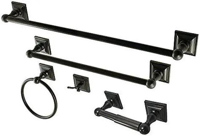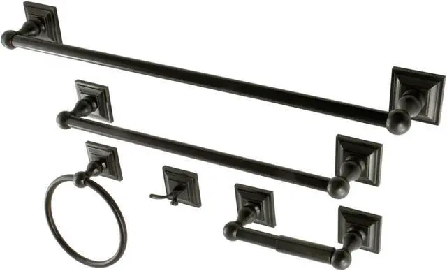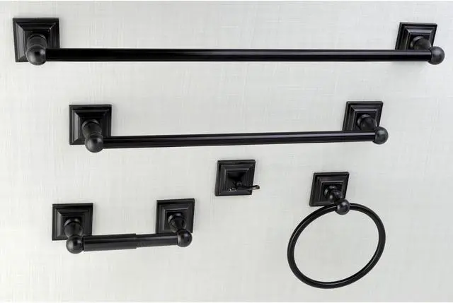 This all inclusive set of bathroom accessories features intricate detailing for a luxurious and astonishing style. Any bathroom will be given an added boost of opulence from these coordinated pieces. Two towel bars, towel ring, robe hook, and a toilet paper holder are included for all of your hanging storage needs. Available in multiple, durable finishes.