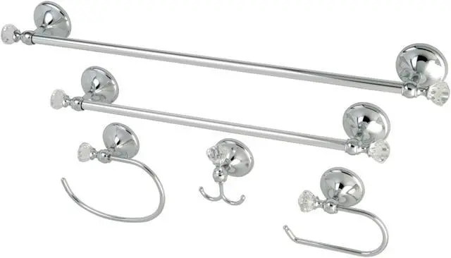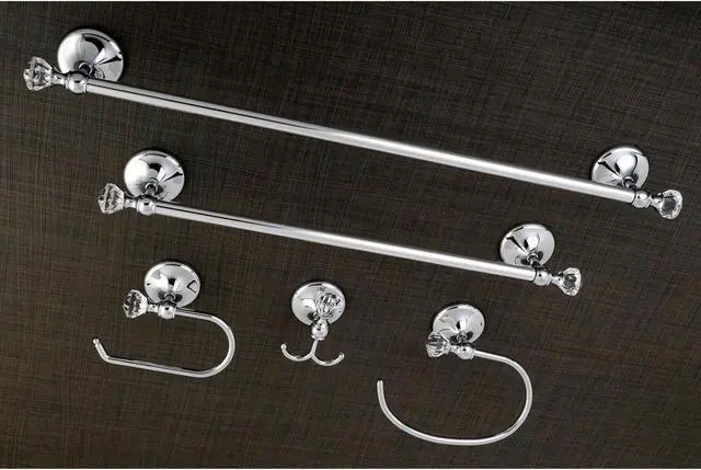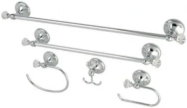 California Proposition 65: This product contains a chemical known to the State of California to cause birth defects or other reproductive harm. This all inclusive set of bathroom accessories features intricate detailing for a luxurious and astonishing style. Any bathroom will be given an added boost of opulence from these coordinated pieces. Two towel bars, towel ring, robe hook, and a toilet paper holder are included for all of your hanging storage needs. Available in multiple, durable finishes.
