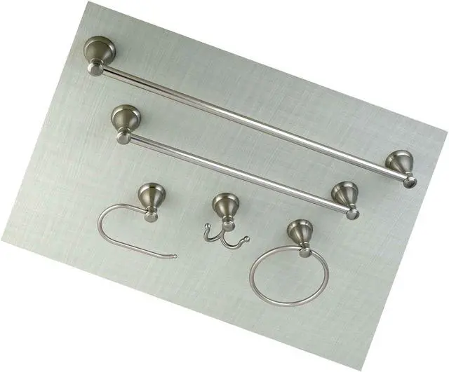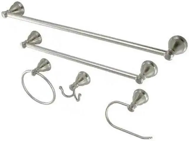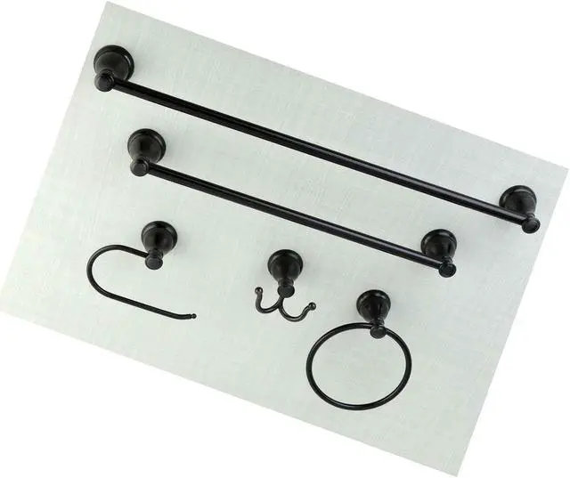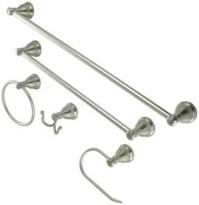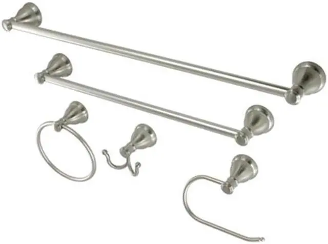 This all inclusive set of bathroom accessories features intricate detailing for a luxurious and astonishing style. Any bathroom will be given an added boost of opulence from these coordinated pieces. Two towel bars, towel ring, robe hook, and a toilet paper holder are included for all of your hanging storage needs. Available in multiple, durable finishes.