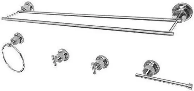 California Proposition 65: This product contains a chemical known to the State of California to cause birth defects or other reproductive harm. This all inclusive set of bathroom accessories features intricate detailing for a luxurious and astonishing style. Any bathroom will be given an added boost of opulence from these coordinated pieces. One dual towel bar, towel ring, two robe hooks, and a toilet paper holder are included for all of your hanging storage needs. Available in multiple, durable finishes.