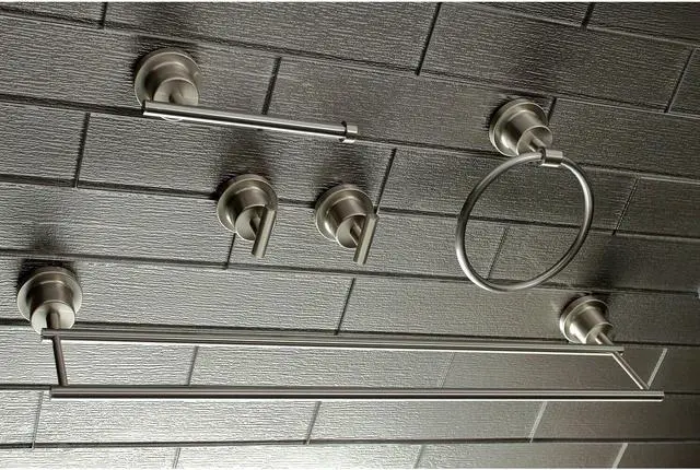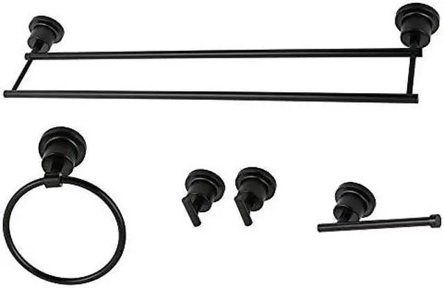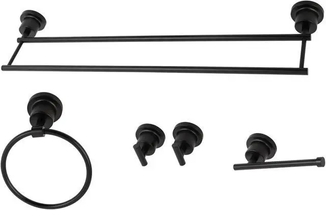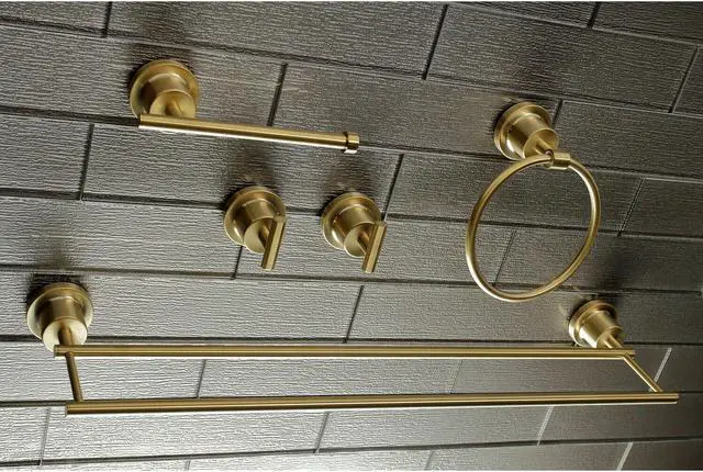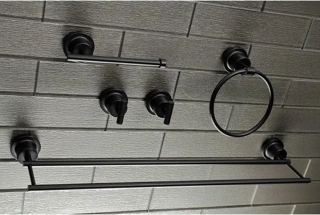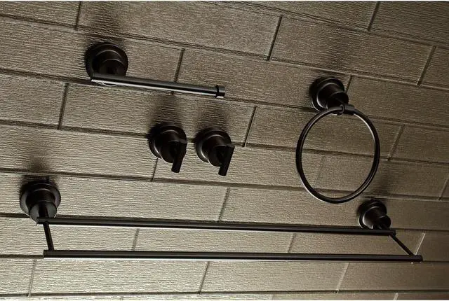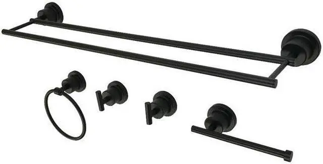 California Proposition 65: This product contains a chemical known to the State of California to cause birth defects or other reproductive harm. This all inclusive set of bathroom accessories features intricate detailing for a luxurious and astonishing style. Any bathroom will be given an added boost of opulence from these coordinated pieces. One dual towel bar, towel ring, two robe hooks, and a toilet paper holder are included for all of your hanging storage needs. Available in multiple, durable finishes.