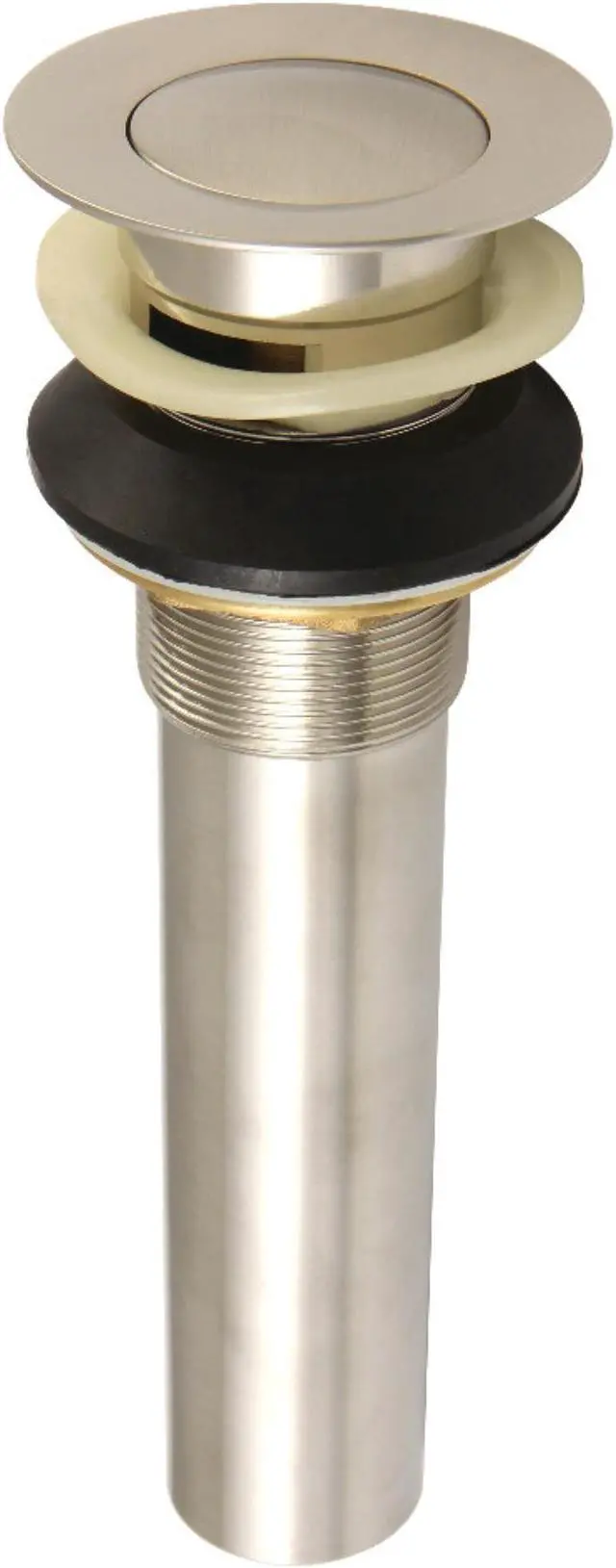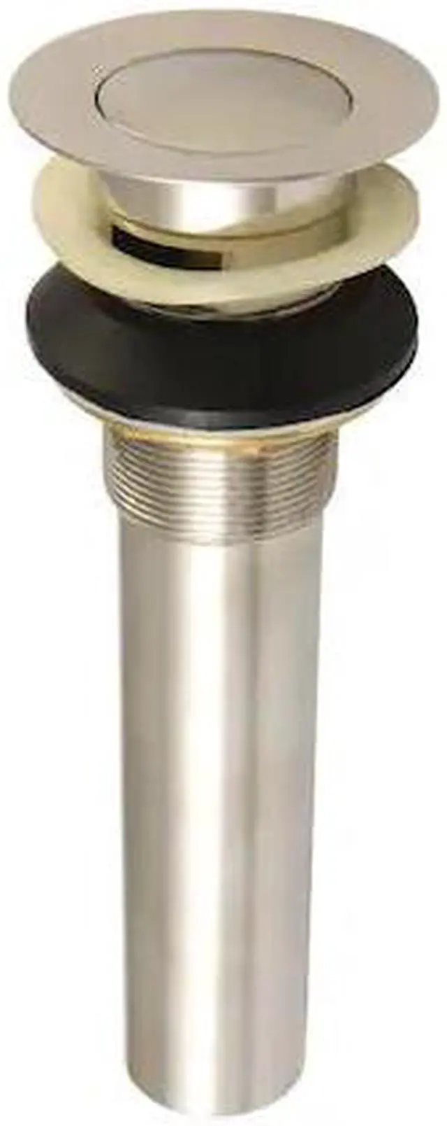 Push-up bathroom drains feature a spring mechanism to easily close and open the fixtures. It is multiple finishes to match your faucet- the Complement Push-Up Drain With Overflow will fit standard bathroom sink sizes.
