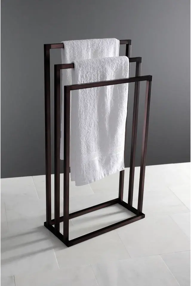 With its stylish modern design, the Pedestal 3-Tier Iron Frame Towel Rack will stand out in your bathroom. The 3-tiers each provide up to 2 feet of space that can be used to hang towels, clothing, or other accessories. The towel rack is constructed from steel for usage for years to come.Product Dimension : 33.13"L x 17.75"W x 8.31"H, Item Weight (lbs) : 4.59