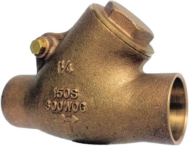 Item - Check Valves Check Valve, Flow Design Single, Mechanism and Body Design Y Swing, Body Material - Valves Bronze, Pipe or Tube Size - Check Valves 2 in, Connection Type - Check Valves Sweat x Sweat, Cracking Pressure - Check Valves 0.5 psi, Mounting Orientation - Check Valves Horizontal, Vertical, Seal Material - Check Valves Bronze, Max. Temp. - Valves 425 Degrees F, Min. Temp. - Valves -20 Degrees F, Max. Water Pressure - Valves 300 psi @ 150 Degrees F.