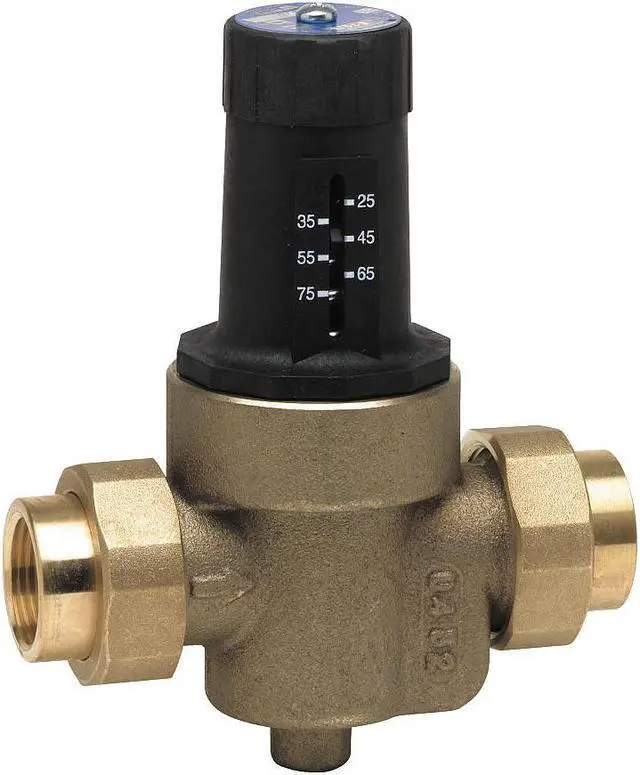 Lead Free Water Pressure Reducing Valve, Valve Type Standard, Strainer Yes, Material Bronze, Pipe Size 3/4 in., Preset Pressure Settings 50 psi, Pressure Adjustment Range 25 to 75 psi, Connection Type FNPT, Height 6-1/16 in., Length 4 in., Max. Temp. 180 Degrees F, Max. Pressure 400 psi, Standards ASSE 1003, ANSI A 112.26. 2, CSA B356, IAPMO. This item has been restricted from sale in the following state (s): []