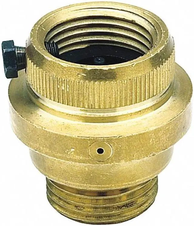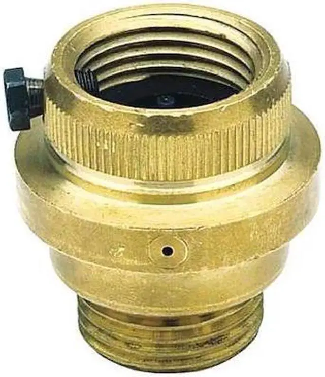 Hose Connection Vacuum Breaker, Size 3/4 in, Connection Type GHT, Material of Construction Lead Free Brass, Seal Silicone, Max. Pressure 125 psi, Temp. Range 33 Degrees to 180 Degrees F, Height 1 3/4 in, Width 1 3/4 in, Standards ANSI A 112.1. 3 (ASSE 1011), ASSE 1001, cCSAus B 64.2, IAPMO, NSF/ANSI 372, UPC, Compliance ANSI A 112.1. 3, ASSE 1011, Lead Free. This item has been restricted from sale in the following state (s): []