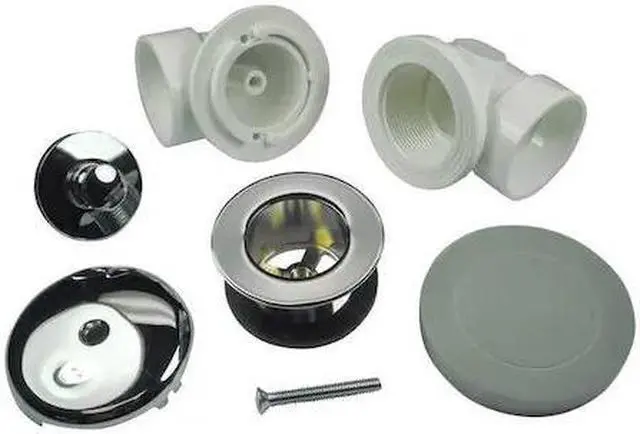 Waste and Overflow Kit, Standards CSA, IAPMO, Includes Grate Yes, Pipe Outside Diameter 1 1/2 in, Drain Material Plastic, Includes Bath Waste, Half Kit, Lift, Connection Type Solvent Weld, Ligature Resistant No, Product Type Waste and Overflow Kit, Drain Style Round, Grate Material Stainless Steel, Grate Color Silver, Overall Diameter 1 1/2 in, Body Diameter 2 1/2 in, Overall Height 2 1/2 in. This item has been restricted from sale in the following state (s): []