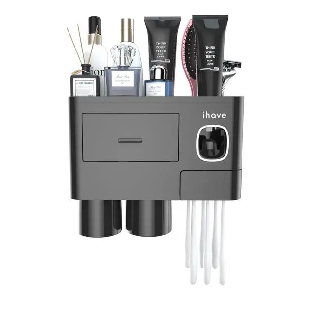 - This multi-function toothbrush holder comes with a toothpaste dispenser, making it easy to squeeze the toothpaste without waste.