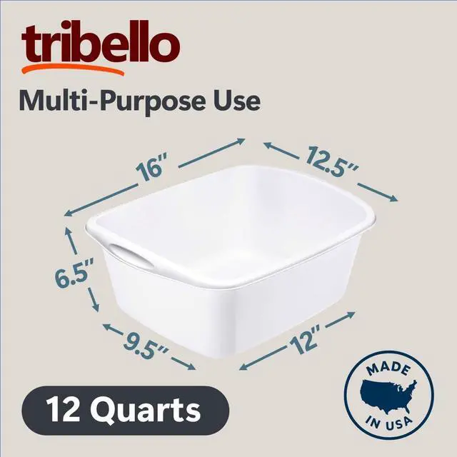 Measures 16" L x 12.5" W (top) and 12" W (base), with a 9.5" depth and 6.5" height. A spacious, well-shaped Dishpan ideal for soaking, washing, and everyday household tasks.