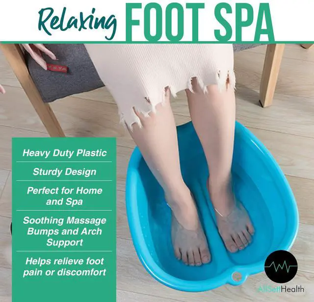 Our sturdy, spacious foot soak tub is generously sized at 11" L x 10.5" W x 7" H. The basin accommodates up to a size 11 wide foot and the high walls are ideal for fully submerging ankles and feet.