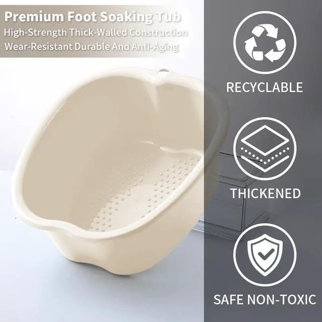 - Enjoy a luxurious spa-like foot bath experience at home! Our extra-deep plastic foot bath tub is made of high-quality thickened PP material, ensuring durability and excellent heat retention, keeping the water temperature longer for a soothing soak. Whether you want to relieve muscle soreness or relax after a long day, this foot bath tub will provide you with comfort and convenience.