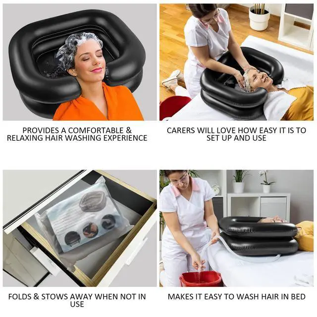 The BIRDDIE Portable Shampoo Basin makes shampooing a bedridden or immobile person easier by allowing hair to be washed easily and comfortably in bed.