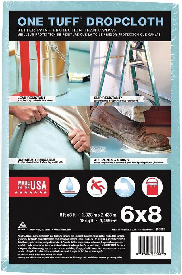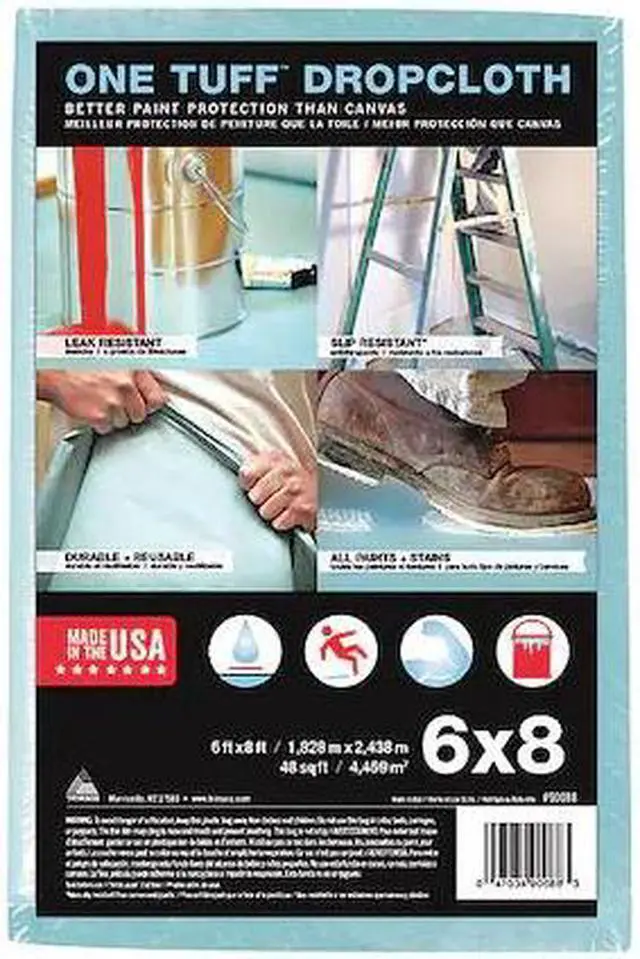 Leakproof and Slip Resistant Drop Cloth, Material Polyester, Pulp, Length 8 ft, Width 6 ft, Thickness 10 mil, Color Blue, Features Slip-Resistant. This item has been restricted from sale in the following state (s): []