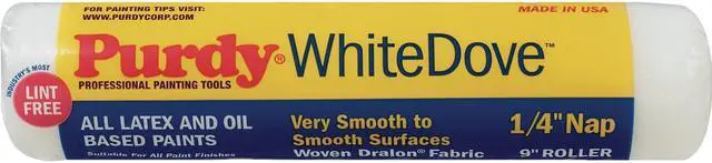 Paint Roller Cover, Cover Type Standard, Surface Texture Smooth, Very Smooth, Compatible Roller Frame Style Cage, 9 in Overall Length, 1/4 in Nap Size, Surface Material Drywall, Paint Type Oil Based Paints, Water Based Paints, Core Diameter 1 1/2 in, Cover Material Dralon Fabric, Core Material Polypropylene. This item has been restricted from sale in the following state (s): []