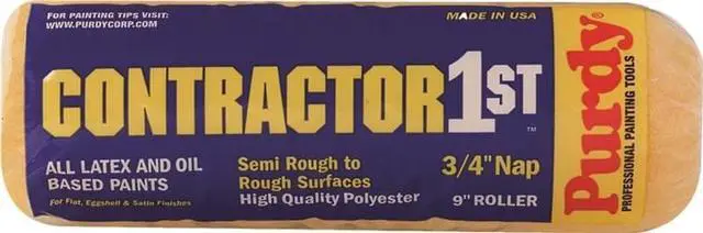 Paint Roller Cover, Cover Type Standard, Surface Texture Semi-Rough, Compatible Roller Frame Style Cage, 9 in Overall Length, 3/4 in Nap Size, Surface Material Concrete, Drywall, Paint Type Oil Based Paints, Water Based Paints, Core Diameter 1 1/2 in, Cover Material Polyester, Core Material Polypropylene, Sheen Type Eggshell, Flat, Satin. This item has been restricted from sale in the following state (s): []