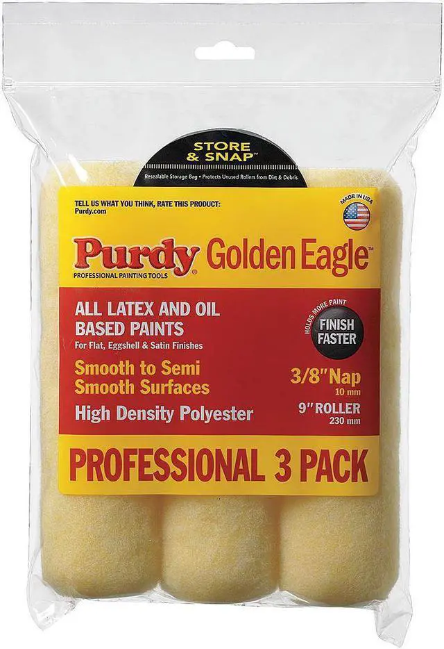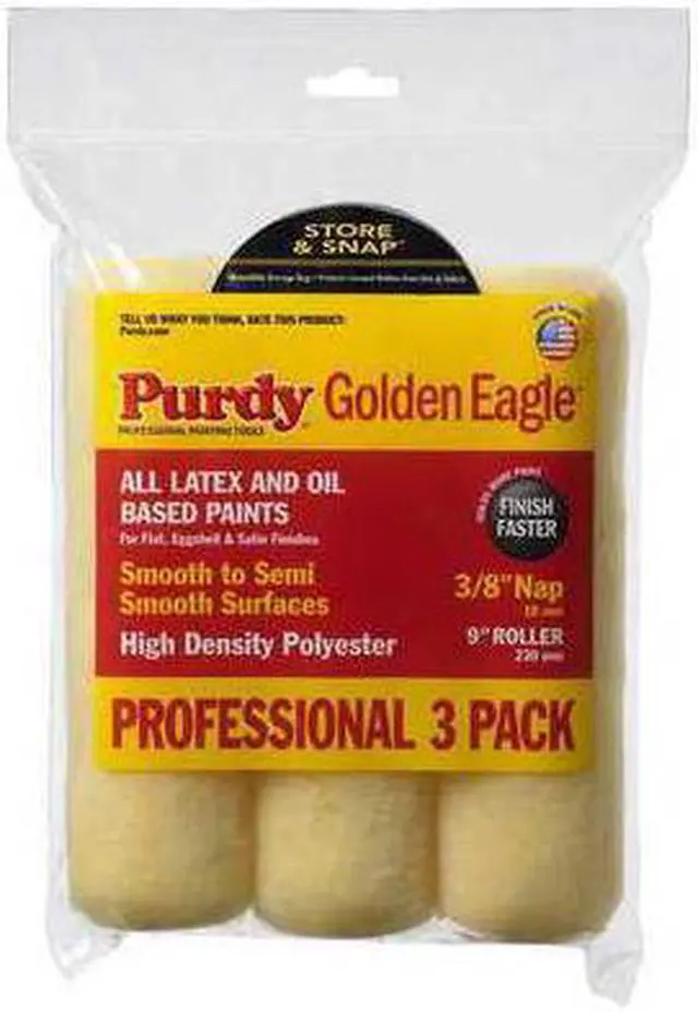 Paint Roller Cover, Cover Type Standard, Surface Texture Semi-Smooth, Smooth, Compatible Roller Frame Style Cage, 9 in Overall Length, 3/8 in Nap Size, Surface Material Drywall, Masonry, Wood, Paint Type Oil Based Paints, Core Diameter 1 1/2 in, Cover Material Polyester, Core Material Polypropylene, Sheen Type Eggshell, Flat, Satin, Package Quantity 3. This item has been restricted from sale in the following state (s): []