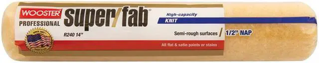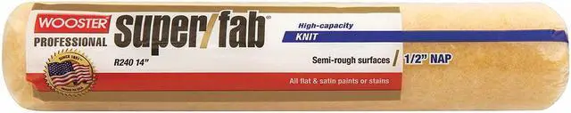 Paint Roller Cover, Cover Type Standard, Surface Texture Semi-Rough, Compatible Roller Frame Style Cage, Yoke, 14 in Overall Length, 1/2 in Nap Size, Surface Material Brick, Concrete, Drywall, Masonry, Wood, Paint Type Flat Paints, Satin Paints, Stains, Waterproofing, Core Diameter 1 1/2 in, Cover Material Knit Fabric, Core Material Polypropylene, For Use With 8614, BR412-21, BR047-18, BR036-18, R017-14, Sheen Type Low Sheen. This item has been restricted from sale in the following state (s): []