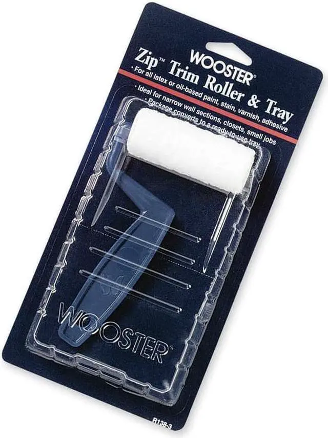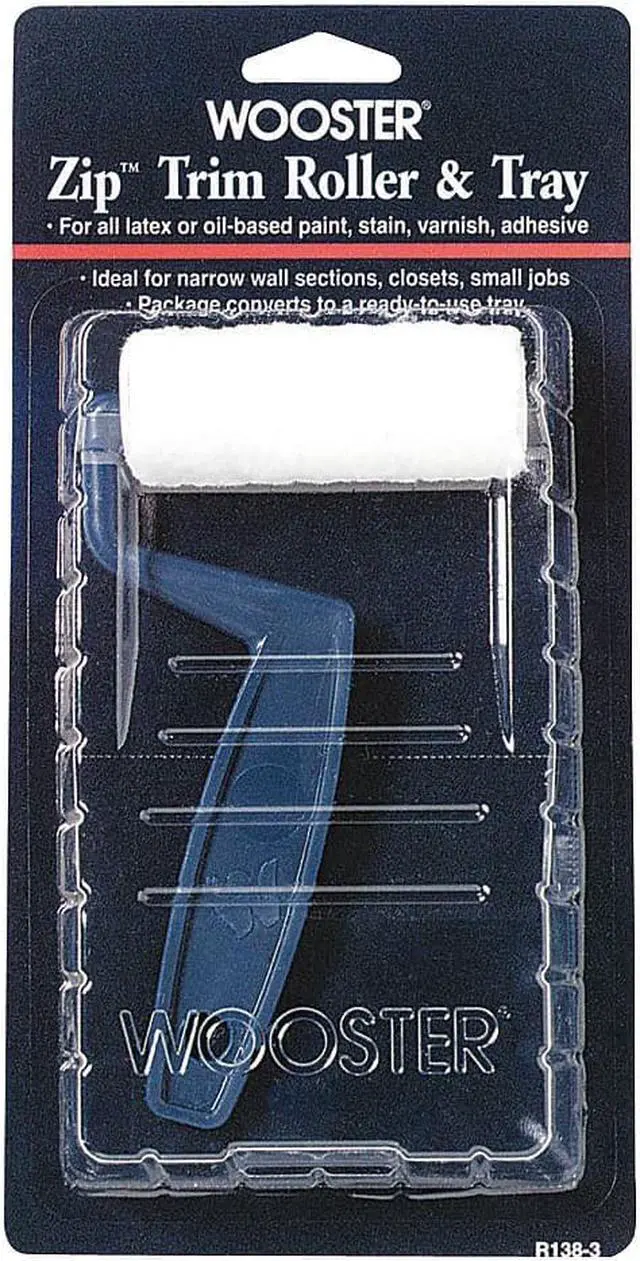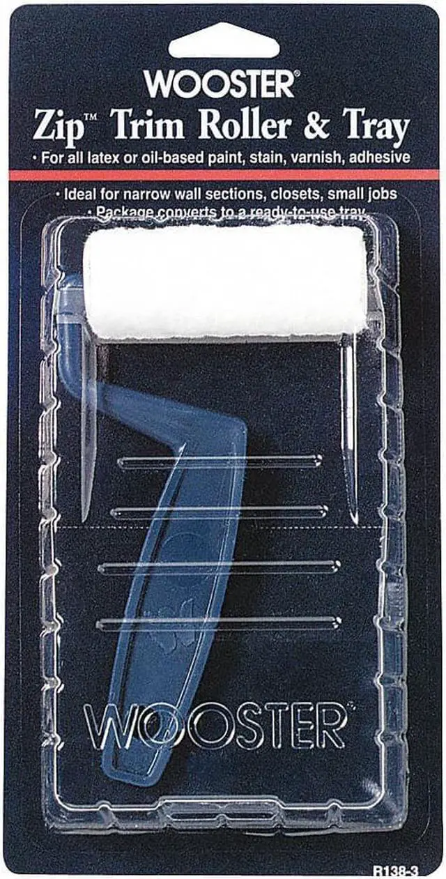 Trim Paint Roller Kit, 3 in Roller Length, Nap Size 3/16 in, Surface Material Concrete, Drywall, Masonry, Metal, Wood, Surface Type Smooth, 6 1/8 in Overall Length, Paint Roller Type Mini Paint Roller Kit, Roller Frame Style Wire, Handle Material Plastic, Paint Type Adhesives, All Paints, Stains, Varnishes, Handle Color Blue, Shank Material Galvanized, Features Package Converts to A Ready to Use Tray, Includes Frame, Tray, Trim Roller, Material Plastic, Number of Pieces Included 2.