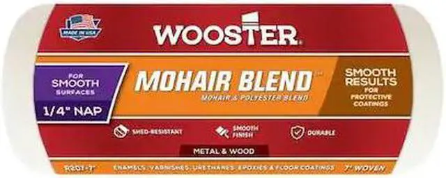 Paint Roller Cover, Cover Type Standard, Surface Texture Smooth, Compatible Roller Frame Style Cage, 7 in Overall Length, 1/4 in Nap Size, Surface Material Adhesives, Epoxies, Floor, Paint Type All Paints, Enamels, Varnishes, Core Diameter 1 1/2 in, Cover Material Mohair Fabric, Polyester, Core Material Polypropylene, For Use With Roller Frame. This item has been restricted from sale in the following state (s): []