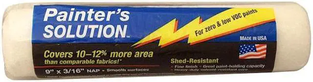 Paint Roller Cover, Cover Type Standard, Surface Texture Smooth, Compatible Roller Frame Style Cage, 9 in Overall Length, 3/16 in Nap Size, Surface Material Brick, Concrete, Drywall, Masonry, Metal, Wood, Paint Type Oil Based Paints, Water Based Paints, Core Diameter 1 1/2 in, Cover Material Woven Fabric, Core Material Polypropylene, For Use With BR549-11, R017-9, R030-9, R402-11, R404-11, R405-13, R501-9. This item has been restricted from sale in the following state (s): []