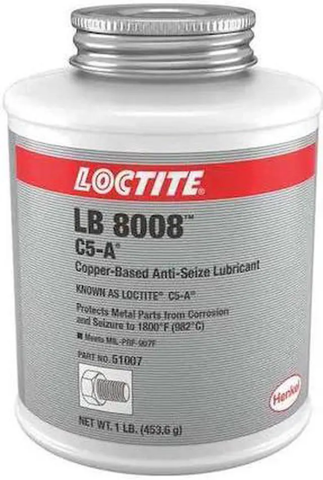 Loctite C5-A Copper Based Anti-Seize Lubricant Exclusive formula suspends copper and graphite in a high quality grease. Protects metal parts from rust, corrosion, galling, and seizing. Establishes greater clamp load Pack of 1