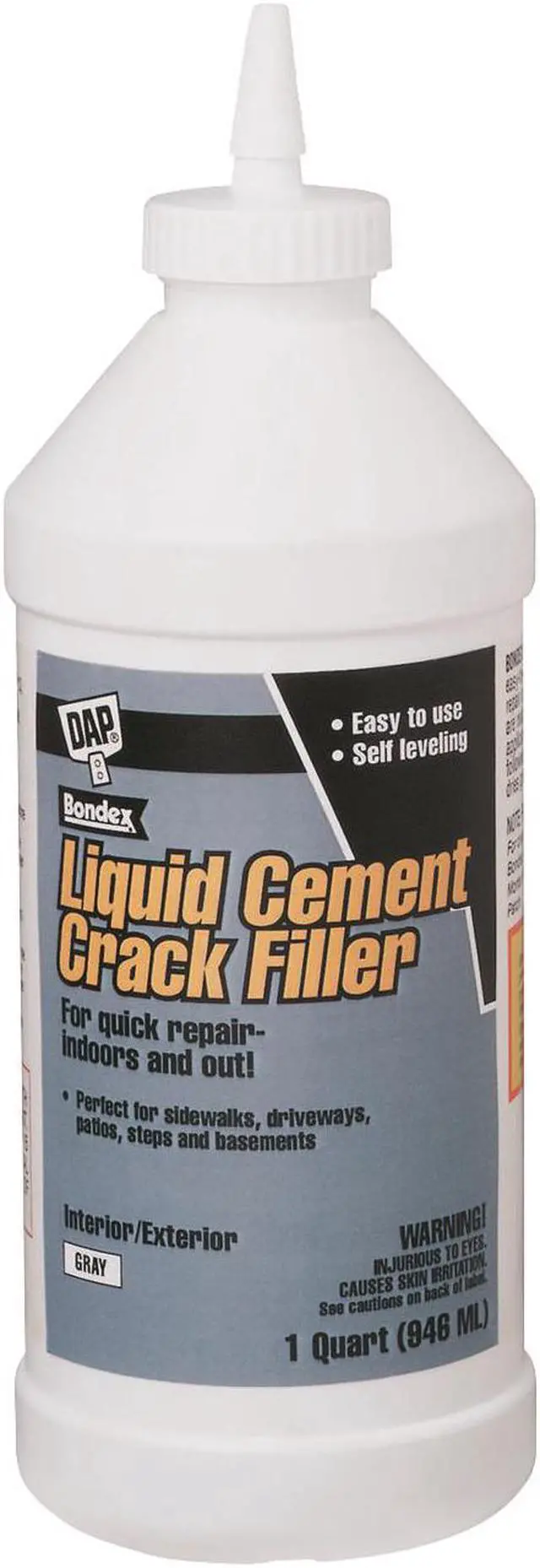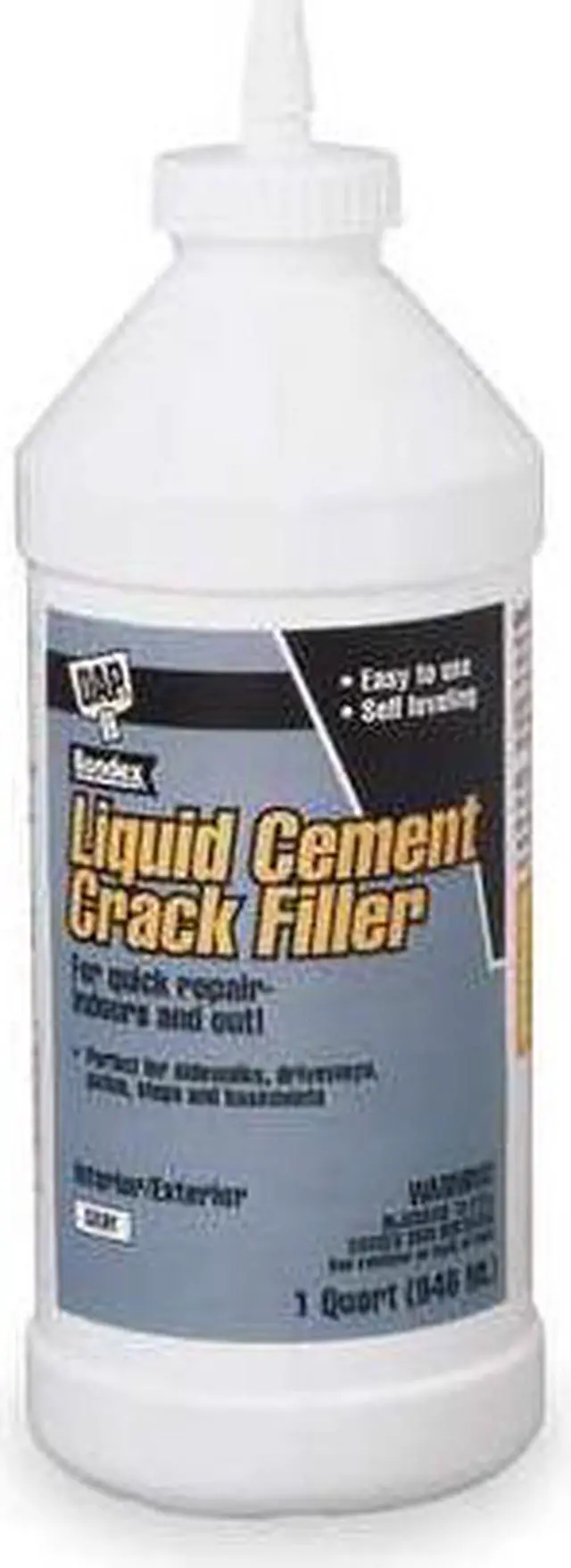 DAP Liquid Cement Crack Filler is an easy-to-use, ready mixed product for the repair of horizontal concrete cracks. Repairs are ready for traffic 30-45 minutes following application, when directions are properly followed. Liquid Cement is self-leveling and dries gray to match most existing concrete. Note: Fills cracks up to 1/2 in width. For cracks greater than 1/2 in width, use DAP Ready-Mixed or Dry Mix Concrete Patch.