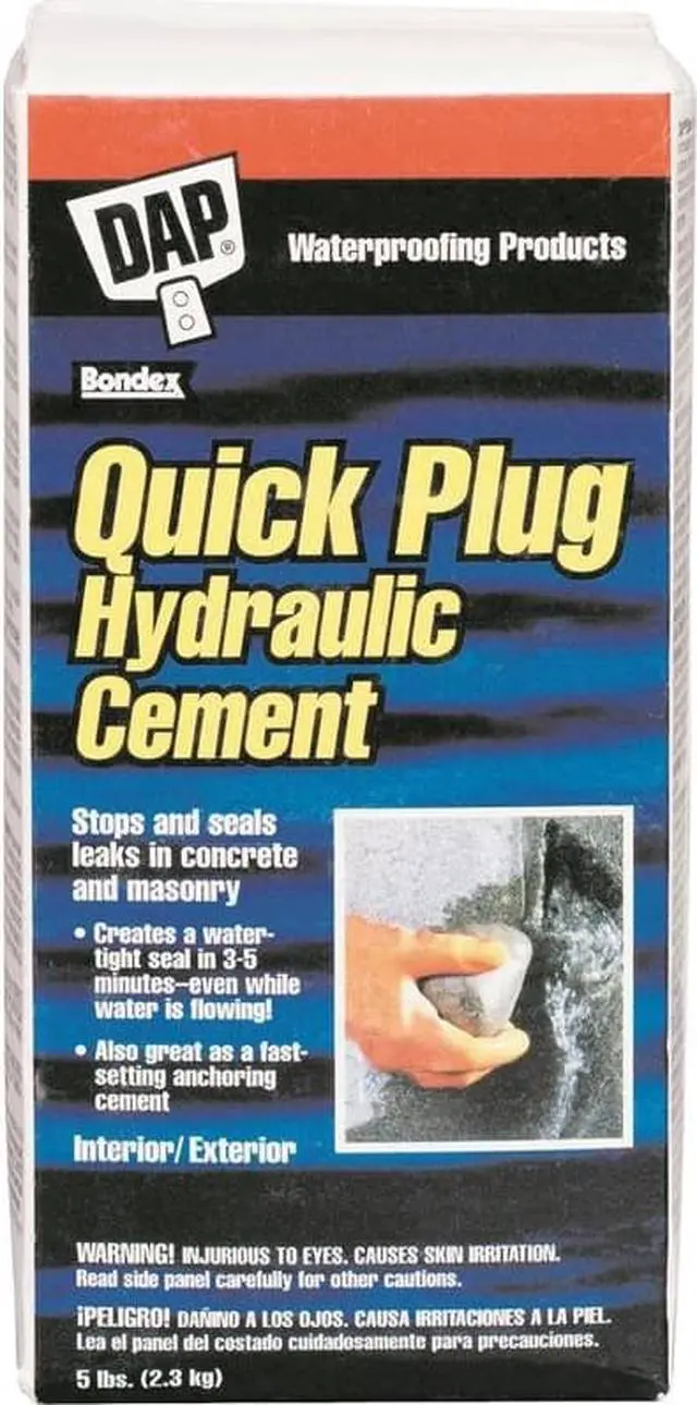 California Proposition 65: This product contains a chemical known to the State of California to cause birth defects or other reproductive harm. Patching Application Hydraulic Cements, Quick Plug Hydraulic Cement, Color Gray, Number of Components 1, Container Size 5 lb, Container Style Box, Coverage Not Specified, VOC 0 g/L, Flash Point Greater Than 200 Degrees F, Starts to Harden 3 min, Full Cure Time 28 days, For Use On Surface Material Concrete, Masonry, Application Sealing Leaking Holes and Cracks, 3000 psi After 7 Days of Cure Time, Creates A Watertight Seal In 3 to 5 min Even While Water Is Flowing, For Use With Any Concrete. This item has been restricted from sale in the following state (s): []
