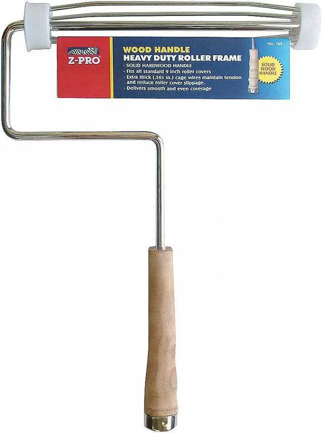 Paint Roller Frame, Roller Length 9 in, Roller Frame Style 5 Wire Cage, 14 in Overall Length, Paint Roller Type Roller Cage/Roller Frame/End Cap, Handle Material Wood, Handle Type Threaded, Paint Type All Paints, Handle Color Brown, Plating Chrome, Roller Frame Type Standard, Shank Material Steel, Shank Wire Size 5/16 in. This item has been restricted from sale in the following state (s): []