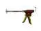 This HybridTech caulk gun features an ergonomic handle, with 10:1 thrust ratio. It is designed for use with caulks, sealants, and adhesives. It features steel construction, and includes a spout cutter, seal pucture tool, and ladder hook. Caulk Gun, HybridTech, Slvr/Maroon/Green
