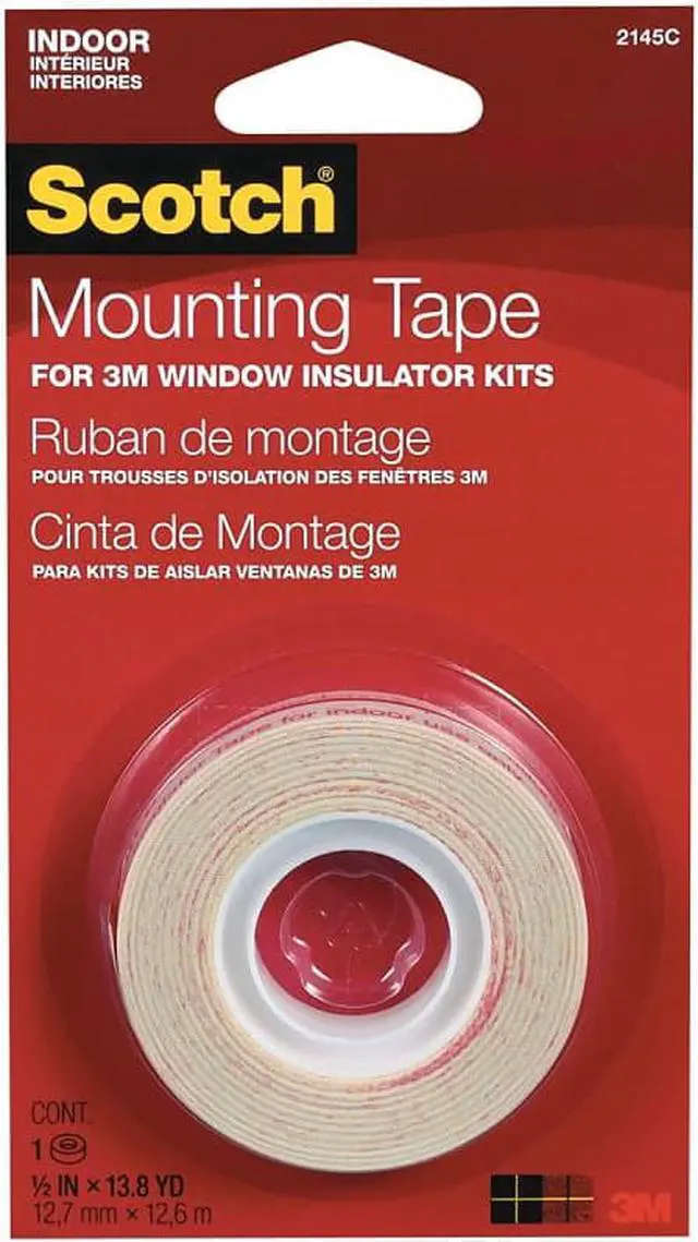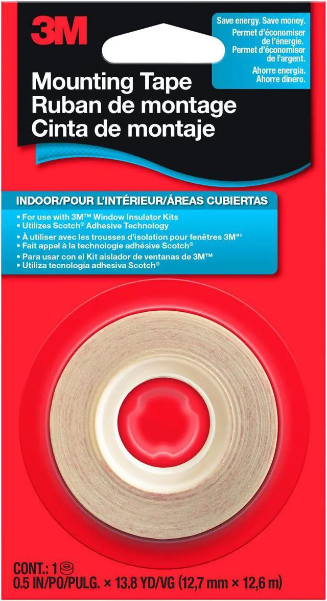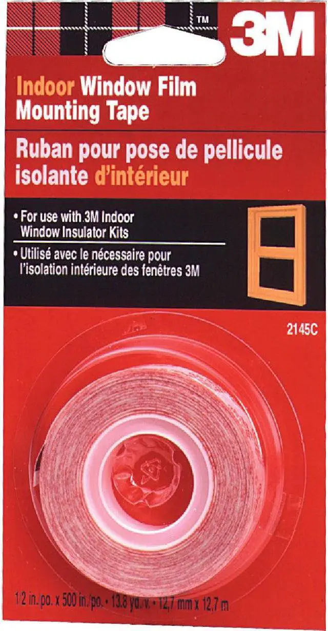 Double-stick tape. 1/2" x 500". For use with the 3M heat shrinkable interior window films. Easy-to-apply to window frames and casings. Creates a strong bond between the window surface, tape and film, securing an airtight seal. Ready-to-peel liner.