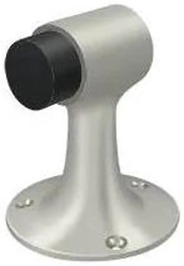 Includes bumper with mounting hardware. Heavy duty floor mounted bumper. Solid brass. Pictured in Satin Nickel.