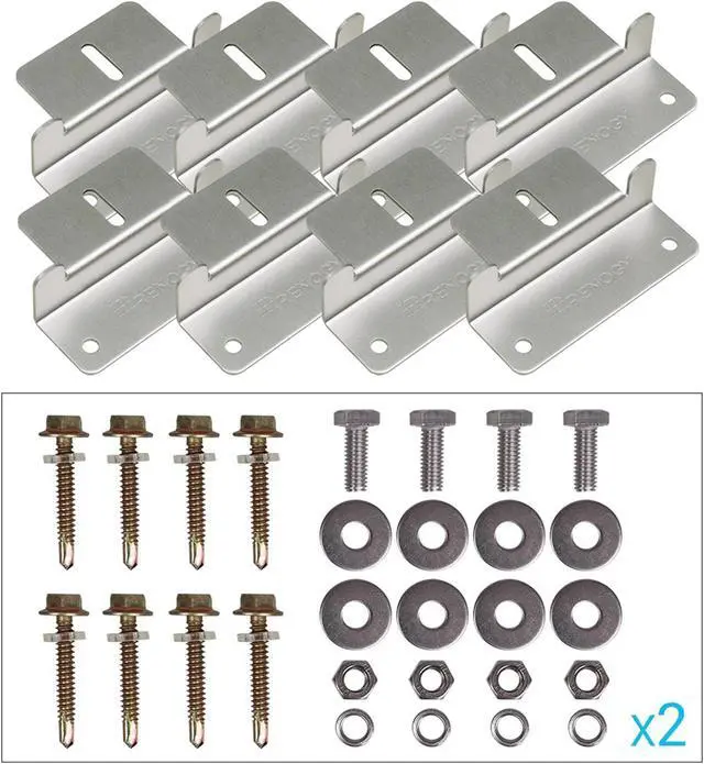 Package Includes: 2 sets x Z Bracket (Four pieces a set) 8 x M6-16 Hex Cap Bolt 8 x M6 Split Lock Washer 8 x M6 Hexagonal Nut 16 x M6 Flat Washer 16 x #11 Self-Drilling Cap Screw and Plastic Retaining Ring Accessories 1-year material warranty