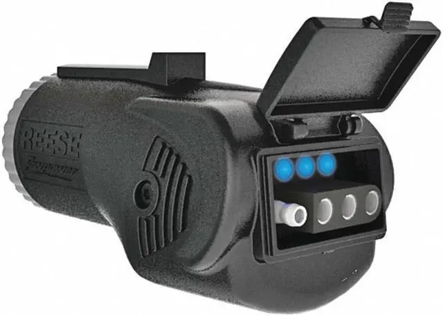 Trailer Adapter, Vehicle Connection 7-Way Blade, Trailer Connection 4-Way Flat, Material Heavy Duty Outer Plastic, For Use With Towing Vehicle, Standards U.S. Patent # D620,453S, Includes LED Circuit Tester. This item has been restricted from sale in the following state(s): []