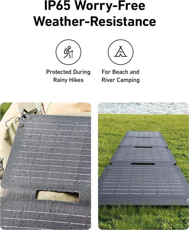 IP65 Weather-Resistant Protection: Rain or shine, Anker PS30 Portable Solar Panel withstands various weather conditions, always delivering power. Perfect for camping, hiking, and outdoor activities.