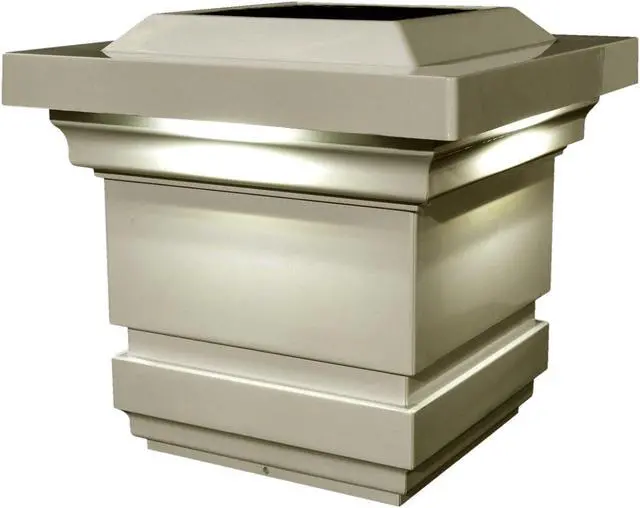 The Attractive traditional patented design of the original Classy Solar Post Cap will add radiance and allure to your fence or deck. Fabricated using four high output surface mount LEDs that will cast a brilliant white light downward onto the outside walls of the post cap and surrounding area, creating a unique ambience. Engineered to provide up to 12 hours of light automatically every night. Will fit over an actual 4" x4" post.