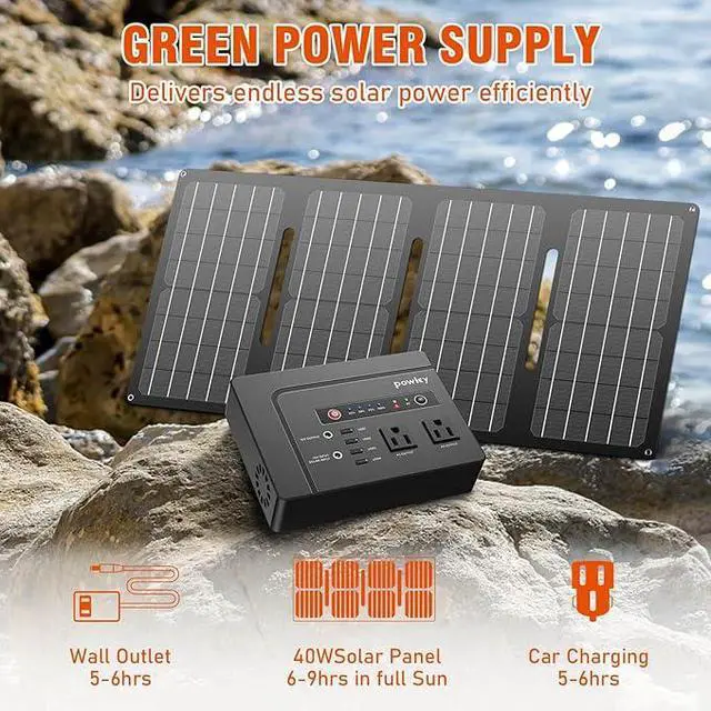 200W Portable Power Bank with Solar Panel 40W, 146Wh Power Bank with AC Outlet, High Eifficiency Waterproof Solar Panel Kit with Battery Bank for Outdoor Camping Home Backup