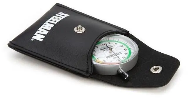 Compact and durable, this tool features a powder-coated zinc alloy casing and a snap-secured PVC storage pouch to keep the gauge face protected when tucked away in a pocket or tool bag.