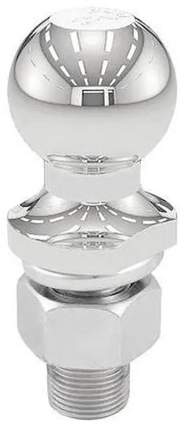 Trailer Ball, Vehicle Class I, II, Ball Diameter 1 7/8 in, Gross Towing Weight Capacity 3, 500 lb, Gross Vehicle Weight Capacity 3, 500 lb, Material Steel, Finish Chrome, Features Fine Threads, Limited Lifetime Warranty (1 yr Finish, 1 yr Parts), Zinc-Plated Hex Nut and Helical Lock Washer for Mounting, Ball Type Trailer Ball, Color Silver, Resistance Properties Corrosion-Resistant, Wear-Resistant, Shank Diameter 1 in, Shank Length 2 1/8 in, Standards VESC V-5