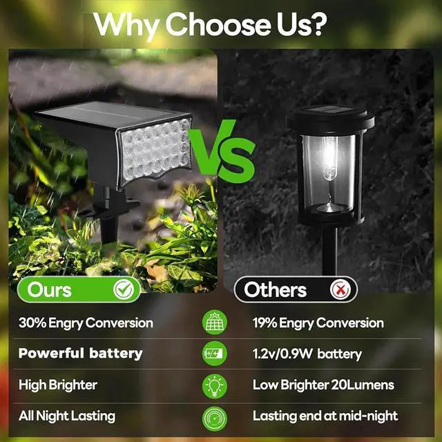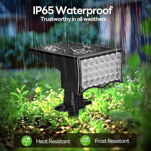 Super Bright Solar Spotlights: Equipped with 28 high-intensity LED beads, these solar spot lights deliver exceptional brightnessoutshining traditional solar outdoor lights. Perfect for enhancing your backyard, garden, driveway, walkway, trees, fences and more.