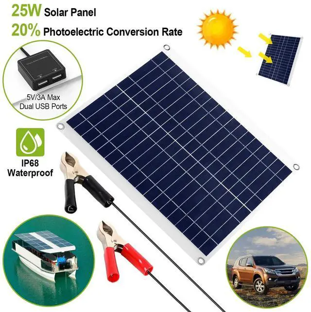 *IP68 WATERPROOF & WIDE APPLICATIONS:IP68 Waterproof performance resists any bad weather,such as snow and rain. Good companion for travel. Charging 12V rechargeable batteries in emergency,suitable for security cameras,laptops,car batteries,RVs,ships,outdoor agriculture,planting,tourism,solar street lights,etc.