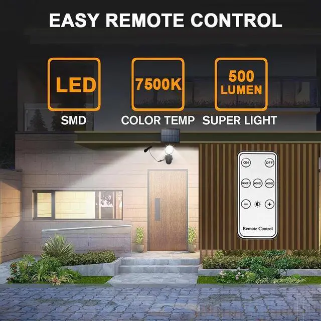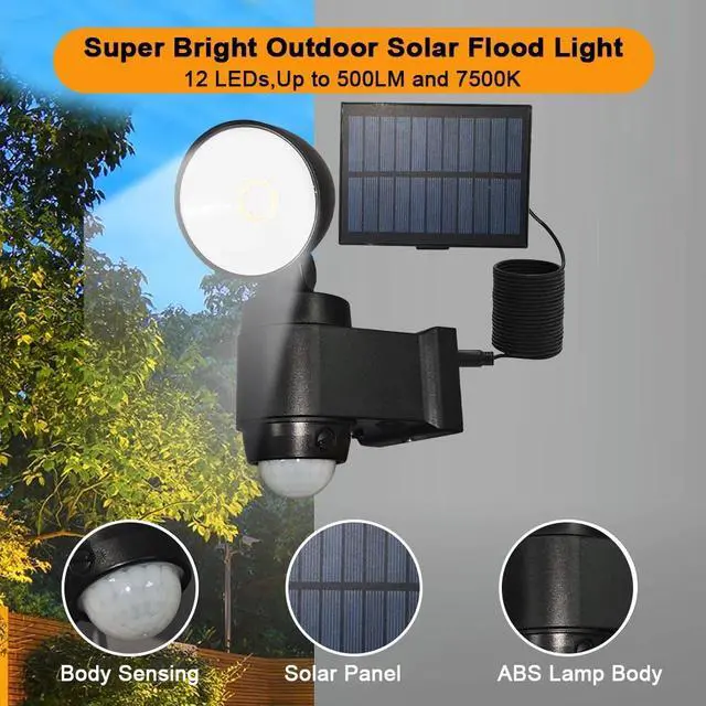 Super Bright Solar Light: Equipped with 12 high-efficiency LED beads, these solar outdoor lights emit up to 500lm of 7500K high brightness, ensuring your courtyard, garage or swimming pool is perfectly illuminated. The advanced heat dissipation design helps extend the light's lifespan, making it a reliable lighting solution.