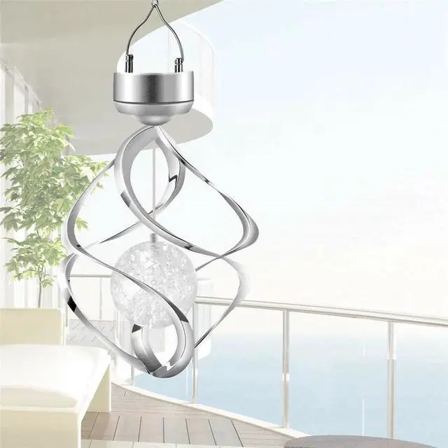 Solar Powered LED Wind Chimes Light Color Changing Hanging Spiral Spinner Lamp